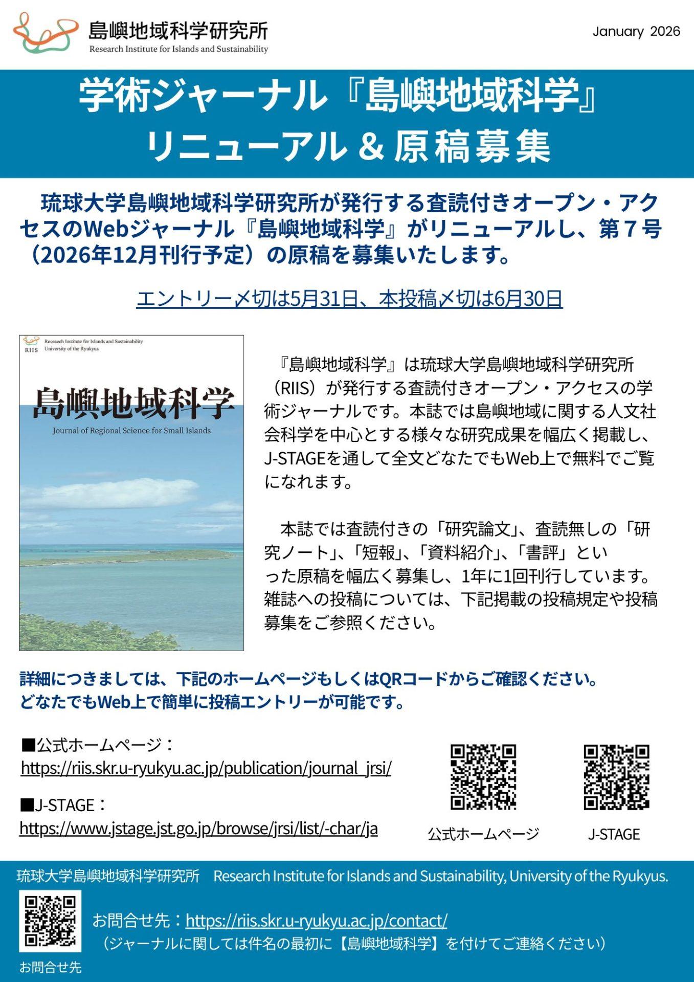 『島嶼地域科学』募集開始案内